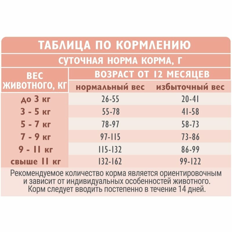 | Возраст животного | взрослые (1-6 лет) |