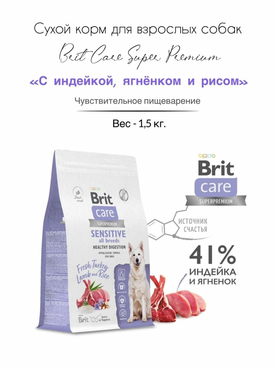 Купить Сухой корм для собак всех пород Brit Care Dog Adult Sensitive Healthy Digestion, чувствительное пищеварение, с индейкой и ягненком 1,5 кг