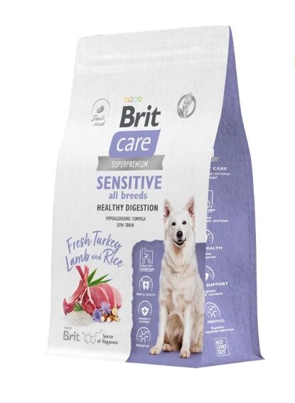 Brit Сухой корм Care Dog Adult Sensitive Healthy Digestion для взрослых собак всех пород с индейкой и ягненком, 12кг 12 кг