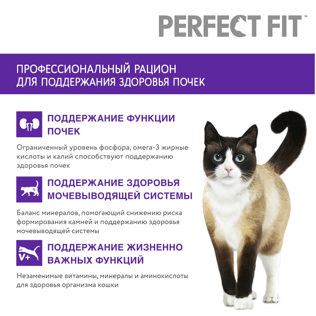 PERFECT FIT для взрослых кошек для поддержания здоровья почек с лососем NEW 2,5 кг