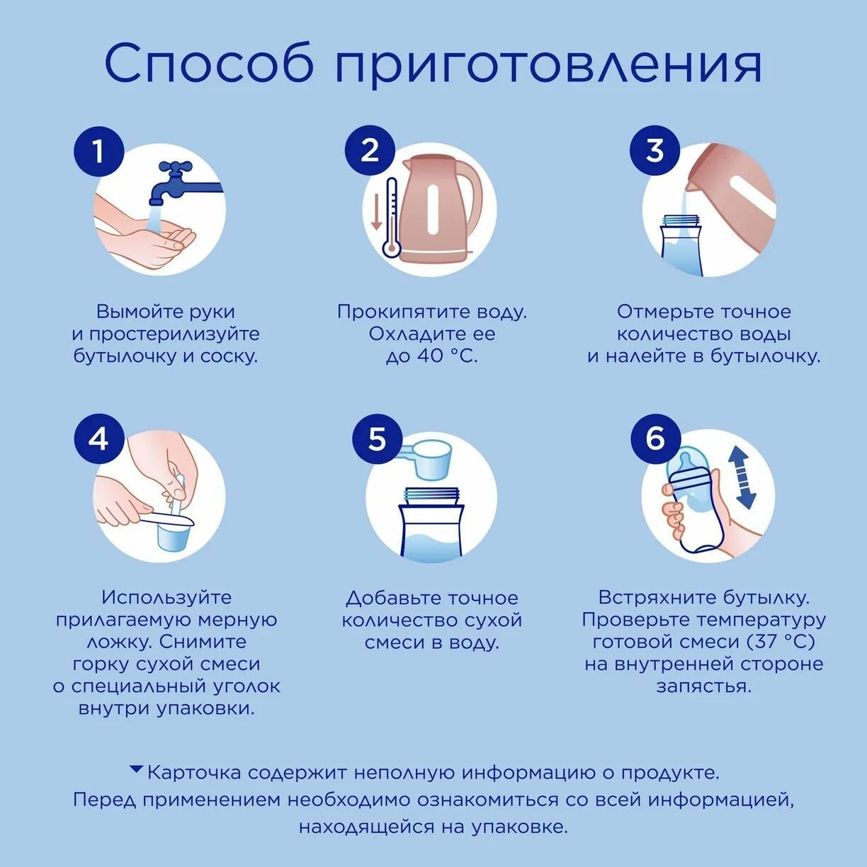 | Состав | деминерализованная молочная сыворотка, смесь растительных масел* (пальмовое, рапсовое, кокосовое, подсолнечное, масло из Mortierella alpina), лактоза, обезжиренное молоко, пребиотики (галактоолигосахариды, фруктоолигосахариды), концентрат белков молочной сыворотки, источники минеральных веществ (кальция карбонат, калия хлорид, калия цитрат, магния хлорид, натрия цитрат, кальция фосфат, железа сульфат, цинка сульфат, меди сульфат, марганца сульфат, йодид калия, селенит натрия), рыбий жир*, источники витаминов (L-аскорбиновая кислота, L-аскорбат натрия, DL-альфа токоферола ацетат, никотинамид, D-пантотенат кальция, фолиевая кислота, ретинола пальмитат, DL-альфа-токоферол, D-биотин, цианокобаламин, тиамина гидрохлорид, холекальциферол, пиридоксина гидрохлорид, фитоменадион, рибофлавин), холина хлорид, эмульгатор – соевый лецитин, таурин, нуклеотиды (уридин-, цитидин-, аденозин-, инозин-, гуанозин-5-монофосфаты), инозитол, L-триптофан, L-карнитин. * Жировой компонент молочной смеси разработан на основе данных о жирнокислотном составе грудного молока |