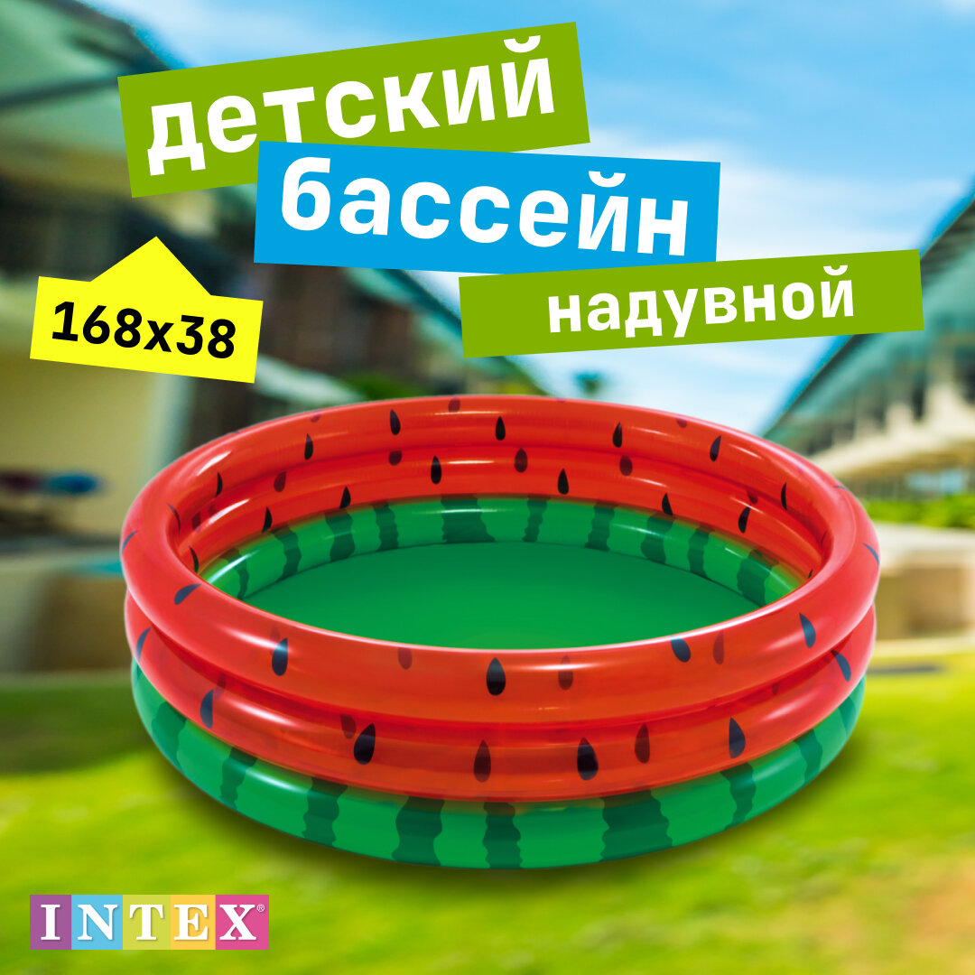 Надувной бассейн INTEX "Арбуз", три кольца, 168х38 см, от 2 лет