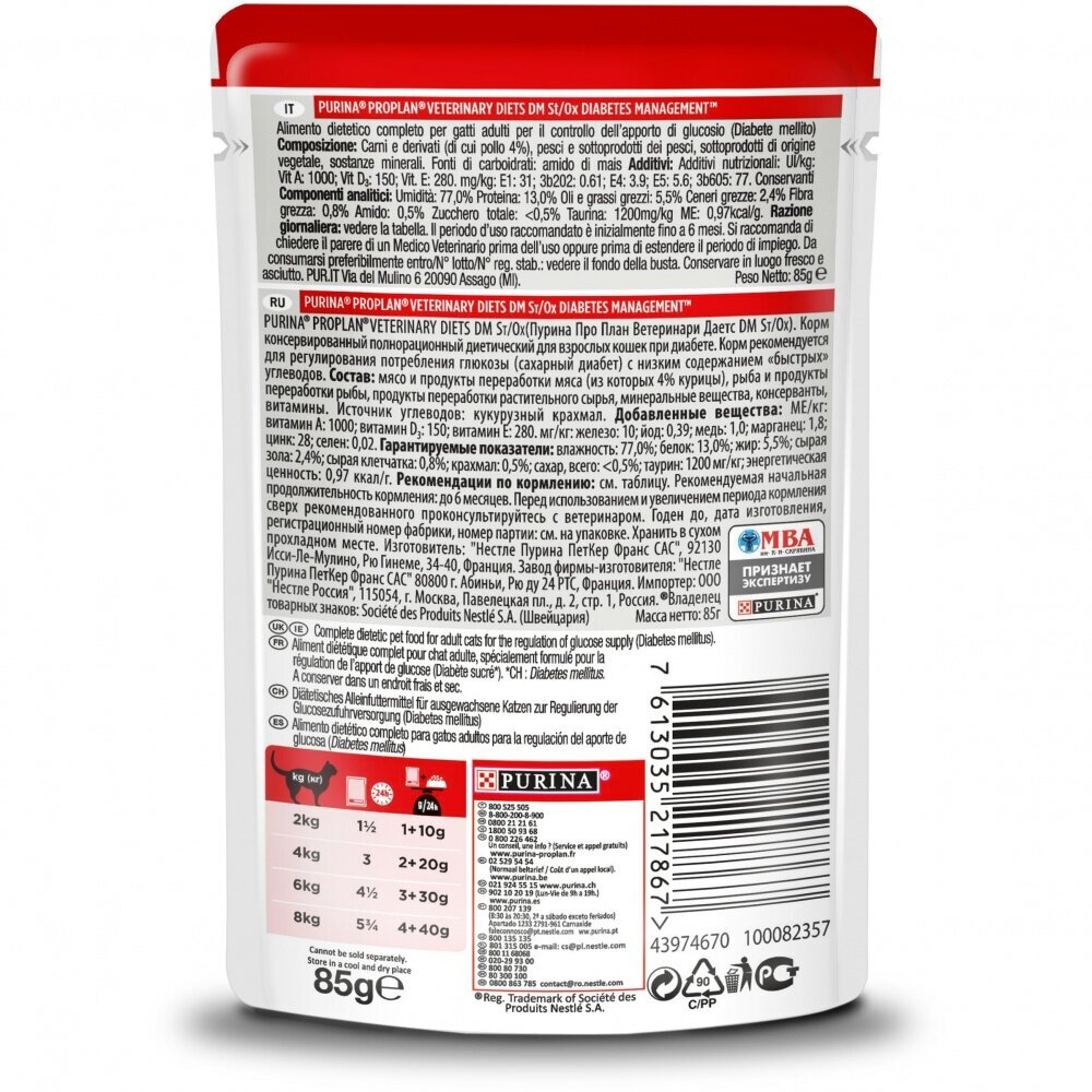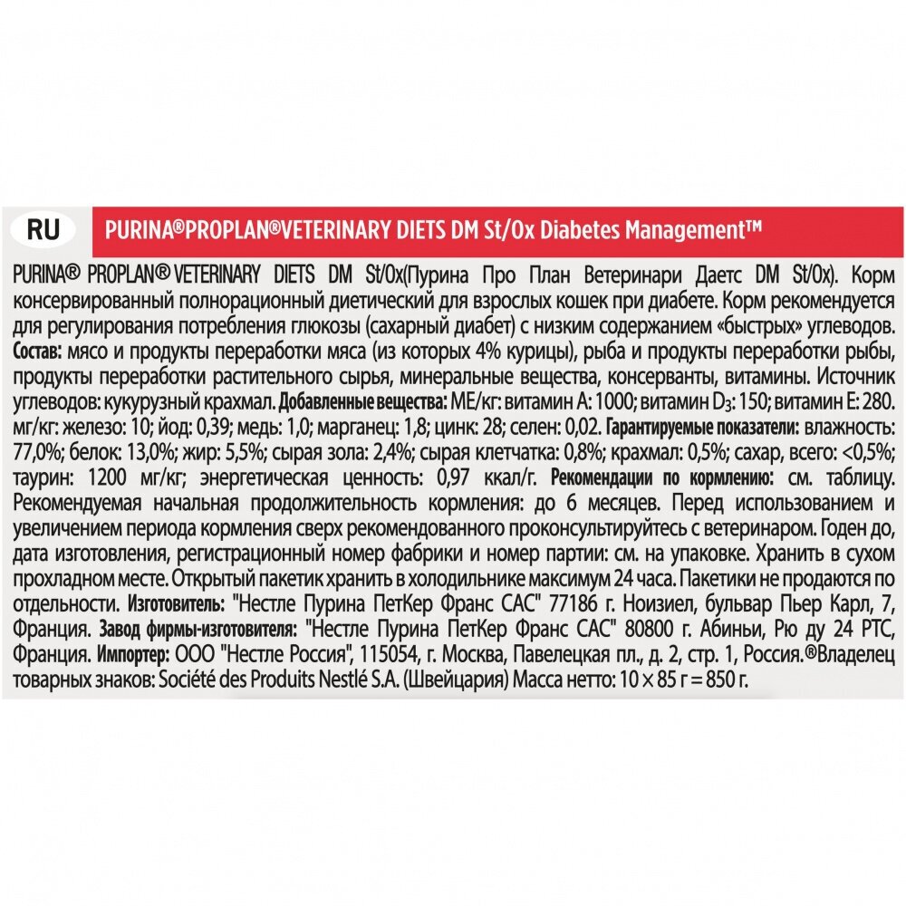 PRO PLAN VETERINARY DIETS DM ST/OX DIABETES для взр кошек при сахарном диабете с куриц пауч 85гр NEW 85 гр х 10 шт