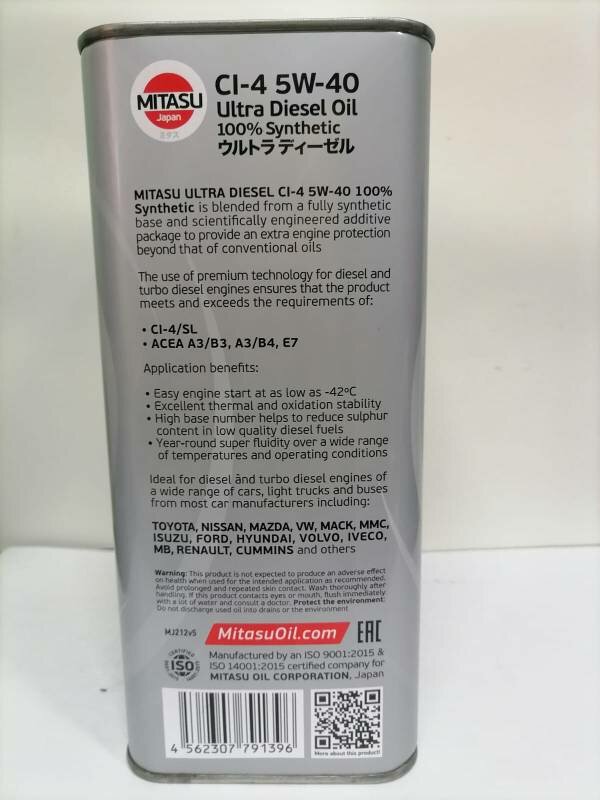 Ниже Вы можете прочитать отзывы на MITASU ULTRA DIESEL OIL CI-4 5W-40 4 л., артикул MJ-212, ознакомится с подробными характеристиками, посмотреть интересные обзоры и фотографии на MITASU ULTRA DIESEL OIL CI-4 5W-40 4 л., артикул MJ-212.