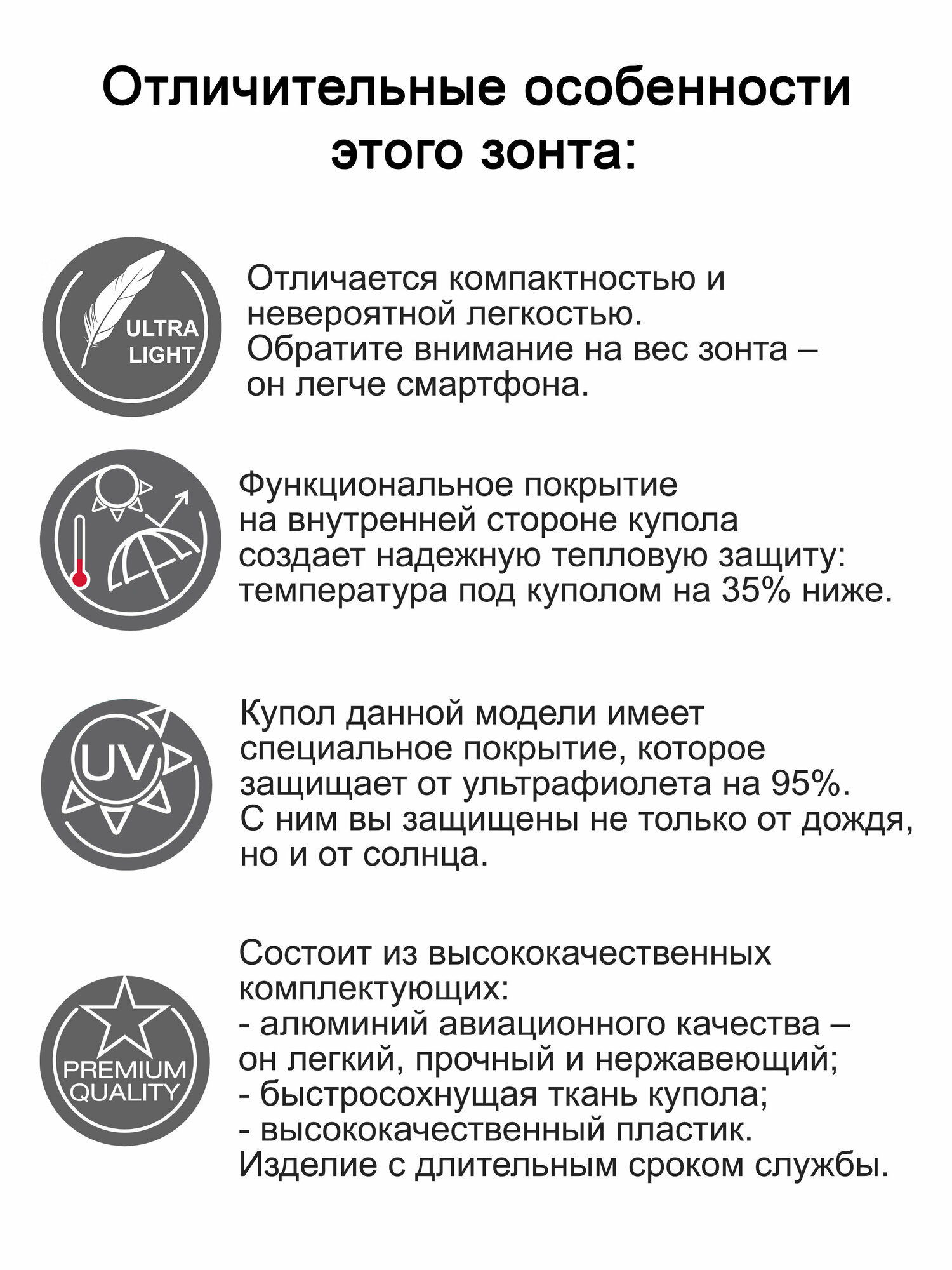 | Минусы: | Небольшой купол, но как у всех зонтов при таких габаритах |