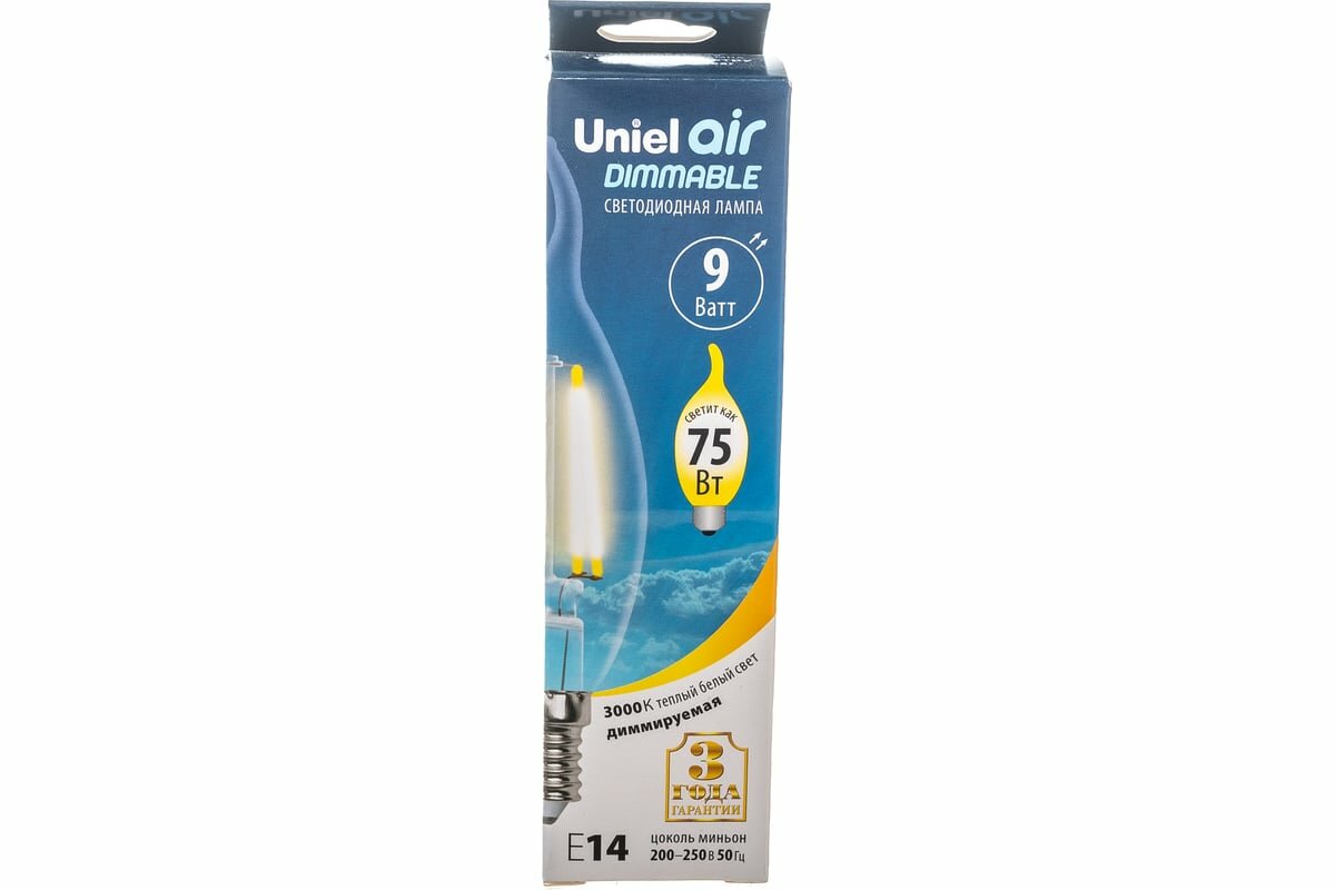 Купить Uniel Лампа светод. диммир.свеча на ветру Серия Air LED-CW35-9W/3000K/E14/CL/DIM UL-00005189