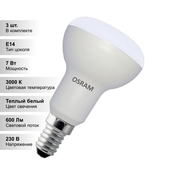 Ниже Вы можете прочитать отзывы на (3 шт.) Светодиодная лампочка OSRAM R50 7Вт 230В 3000К E14, ознакомится с подробными характеристиками, посмотреть интересные обзоры и фотографии на (3 шт.) Светодиодная лампочка OSRAM R50 7Вт 230В 3000К E14.