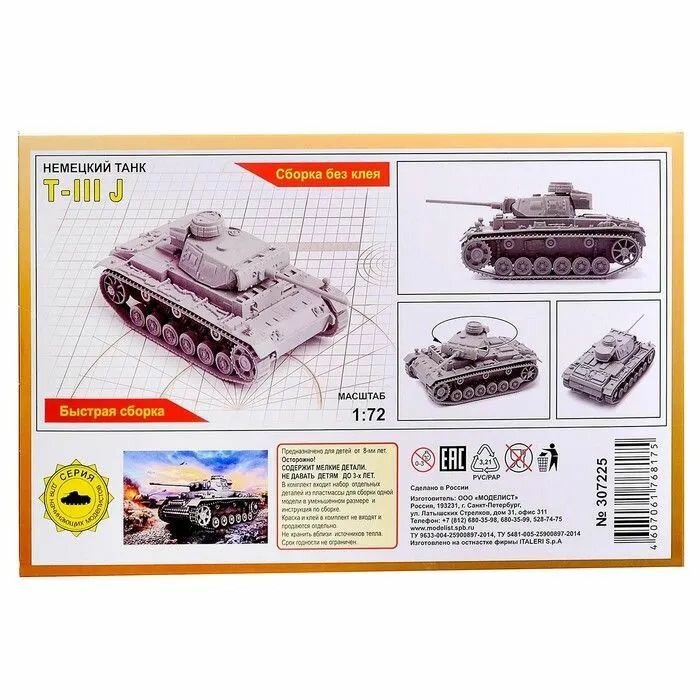 Сборная модель Немецкий танк Т-IIIJ Моделист, 1/72, (307225) интересное: