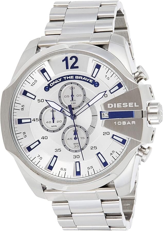 Купить Наручные часы DIESEL Mega Chief, серебряный, синий
