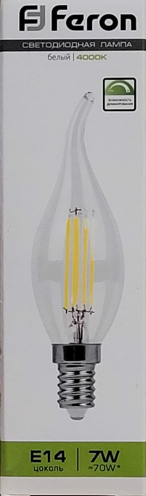 Лампа светодиодная LED 7вт Е14 белый свеча на ветру FILAMENT диммируемая | код 25873 | FERON (1 шт.)