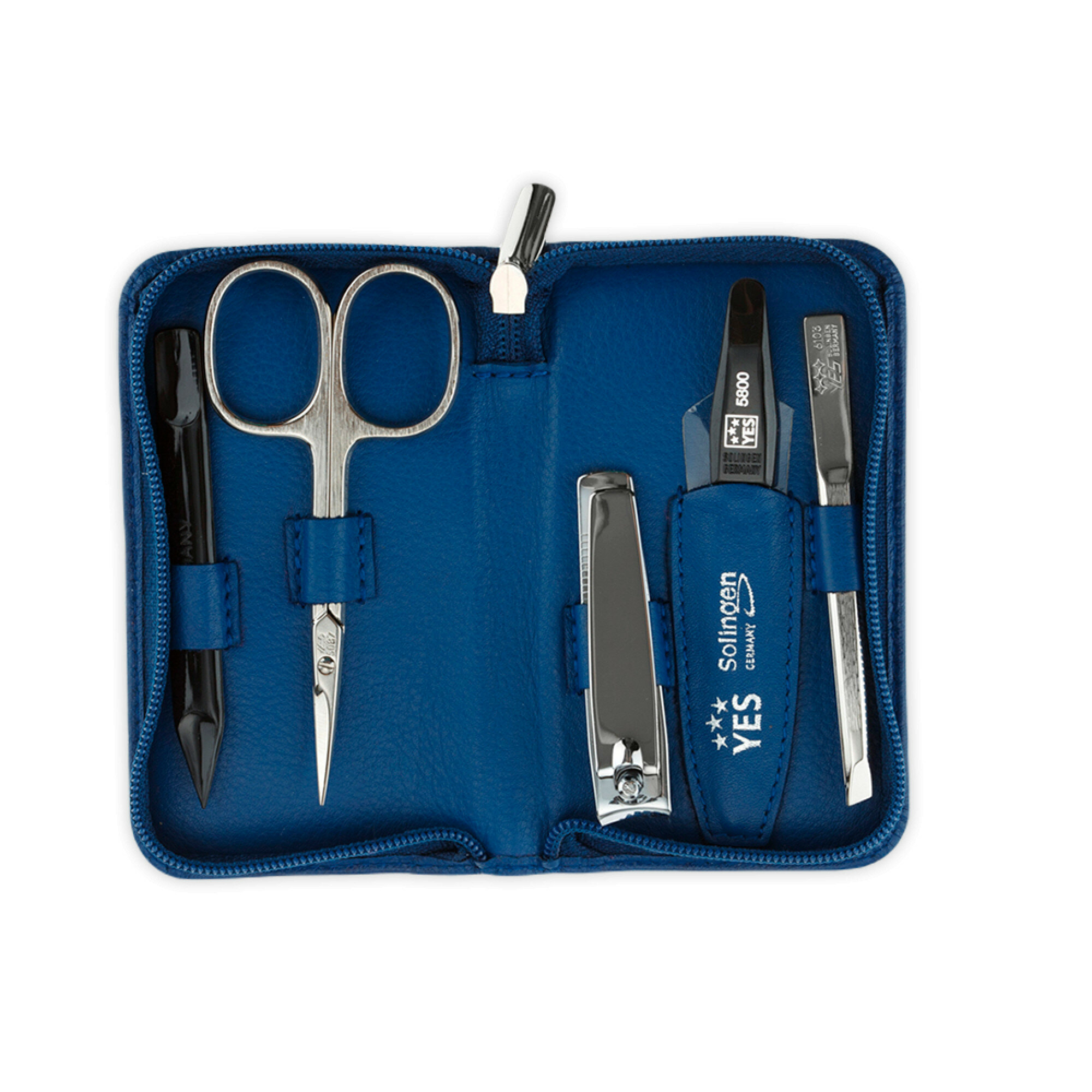 Маникюрный набор YES, 5 пр. Футляр: натуральная кожа, цвет синий, 9073