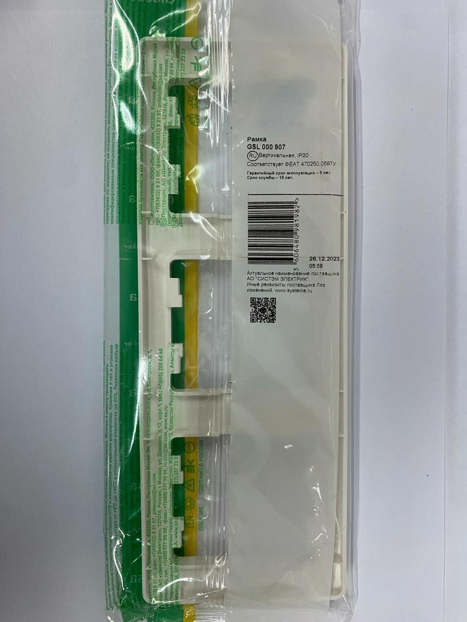 GLOSSA 3-постовая рамка, вертикальная, молочный, SCHNEIDER ELECTRIC GSL000907 (1 шт.)