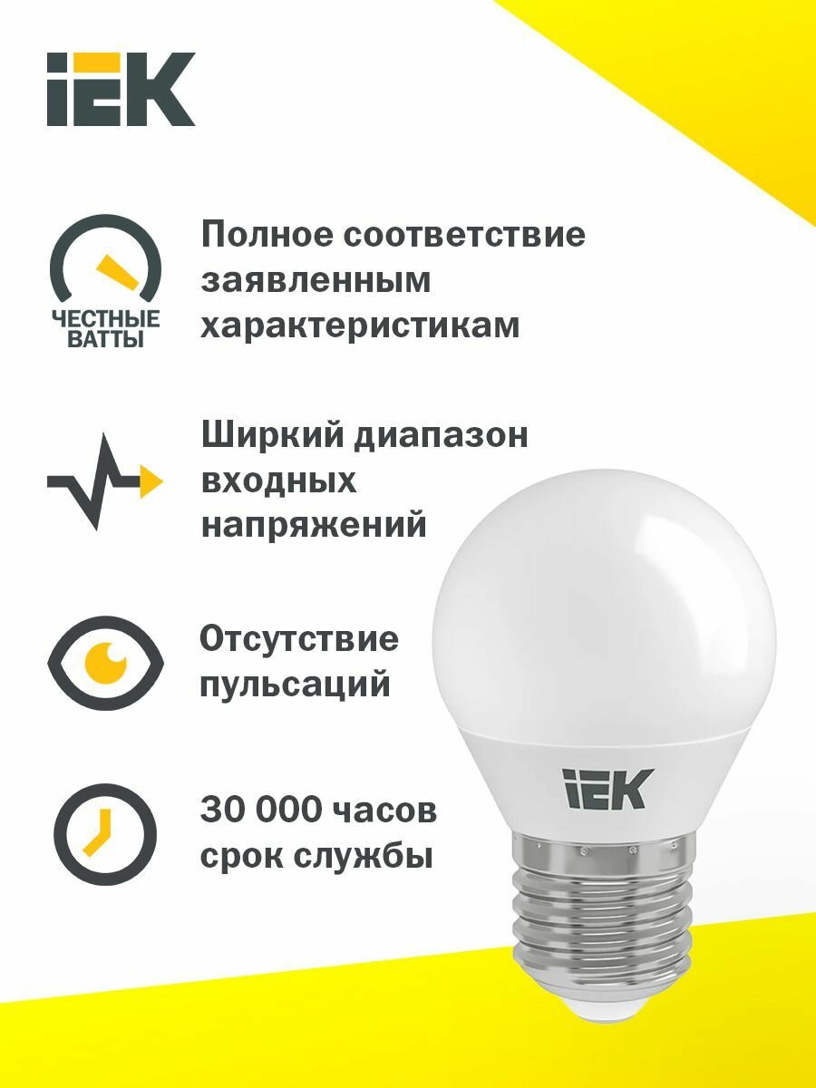 (5 шт.) Светодиодная лампочка IEK шар G45 E27 3W(210lm) 3000K 2K 78x45 матов. ECO LLE-G45-3-230-30-E27 Нейтральный белый. Цоколь E27