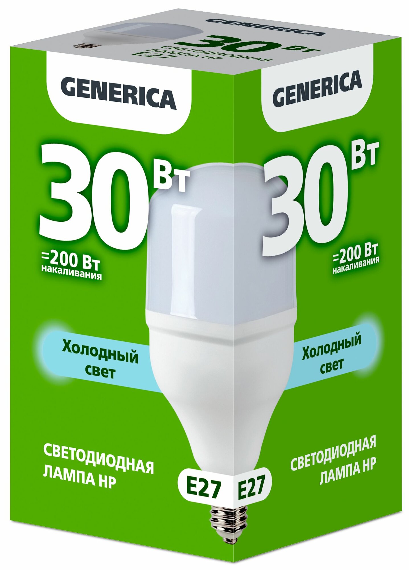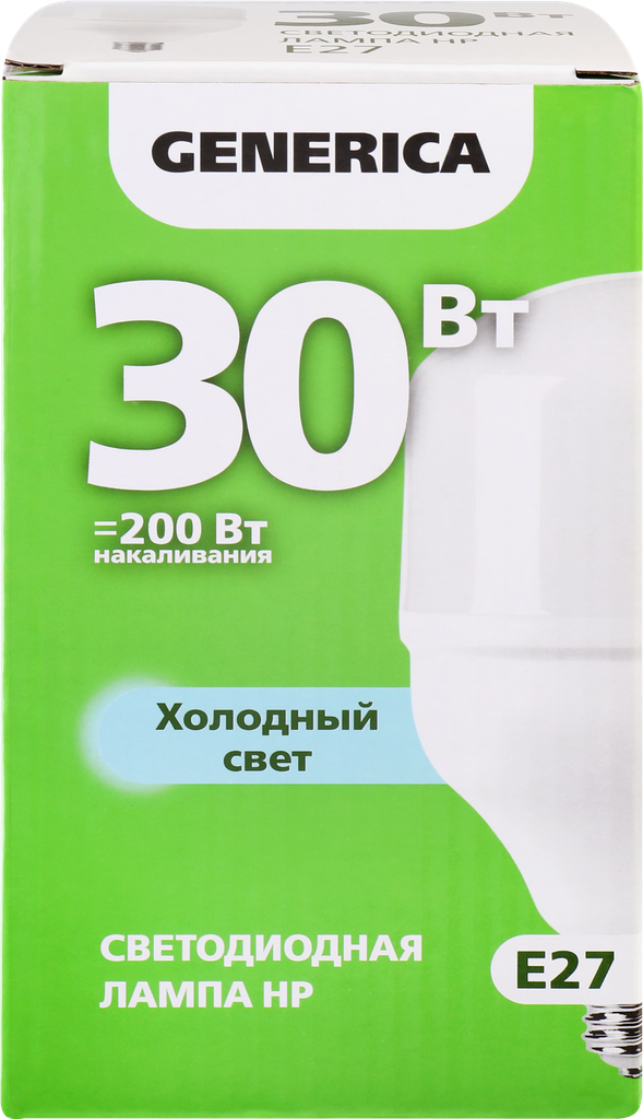 Купить Лампа светодиодная GENERICA HP, 30 Вт, 6500 К, E27, 230 В, LL-HP-30-230-65-E27-G