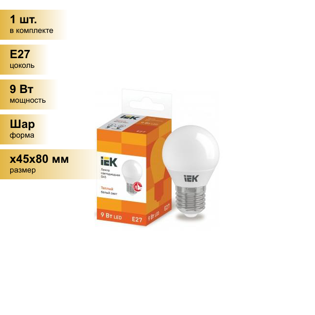 IEK шар G45 E27 9W(810lm) 3000К 3K ECO LLE-G45-9-230-30-E27