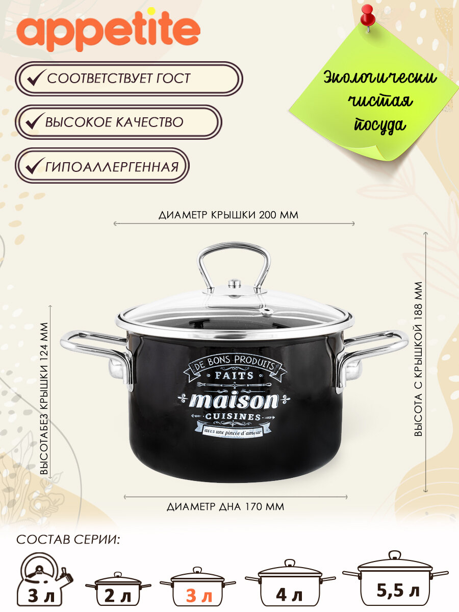 Кастрюля 3,0л Maison, эмаль/Appetite/