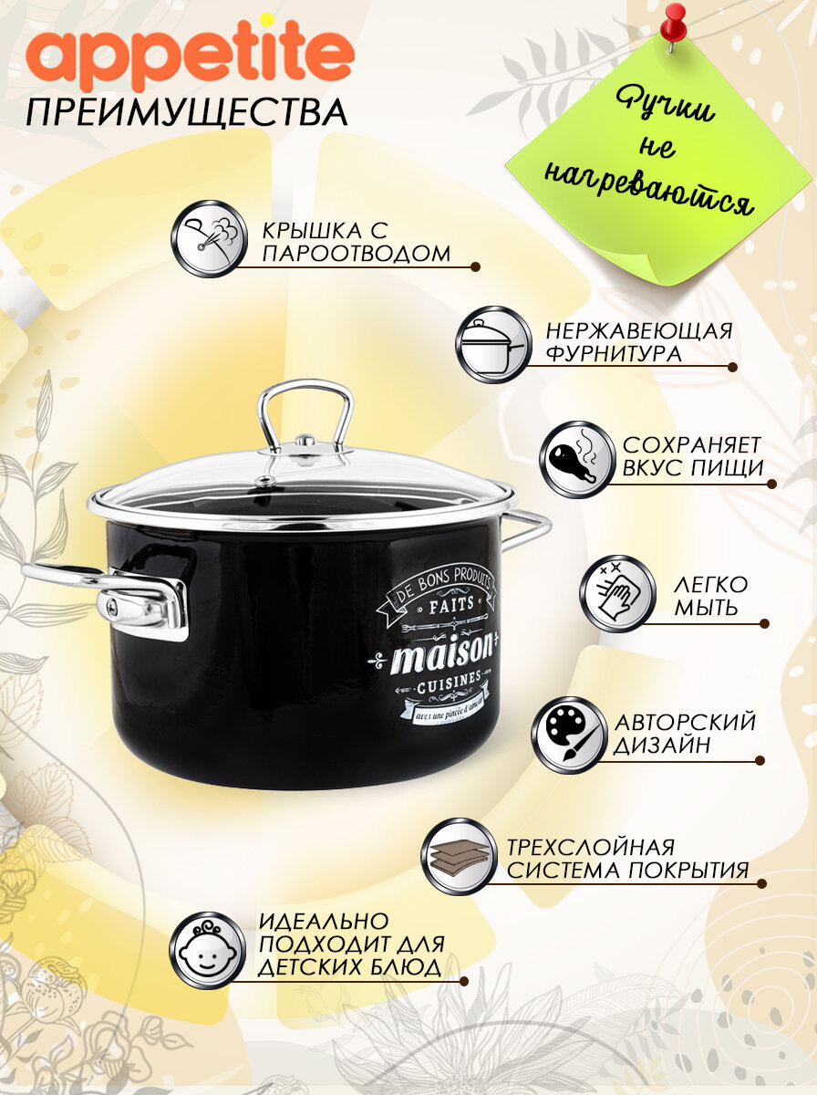Кастрюля эмалированная Appetite Maison, с крышкой, 3 л