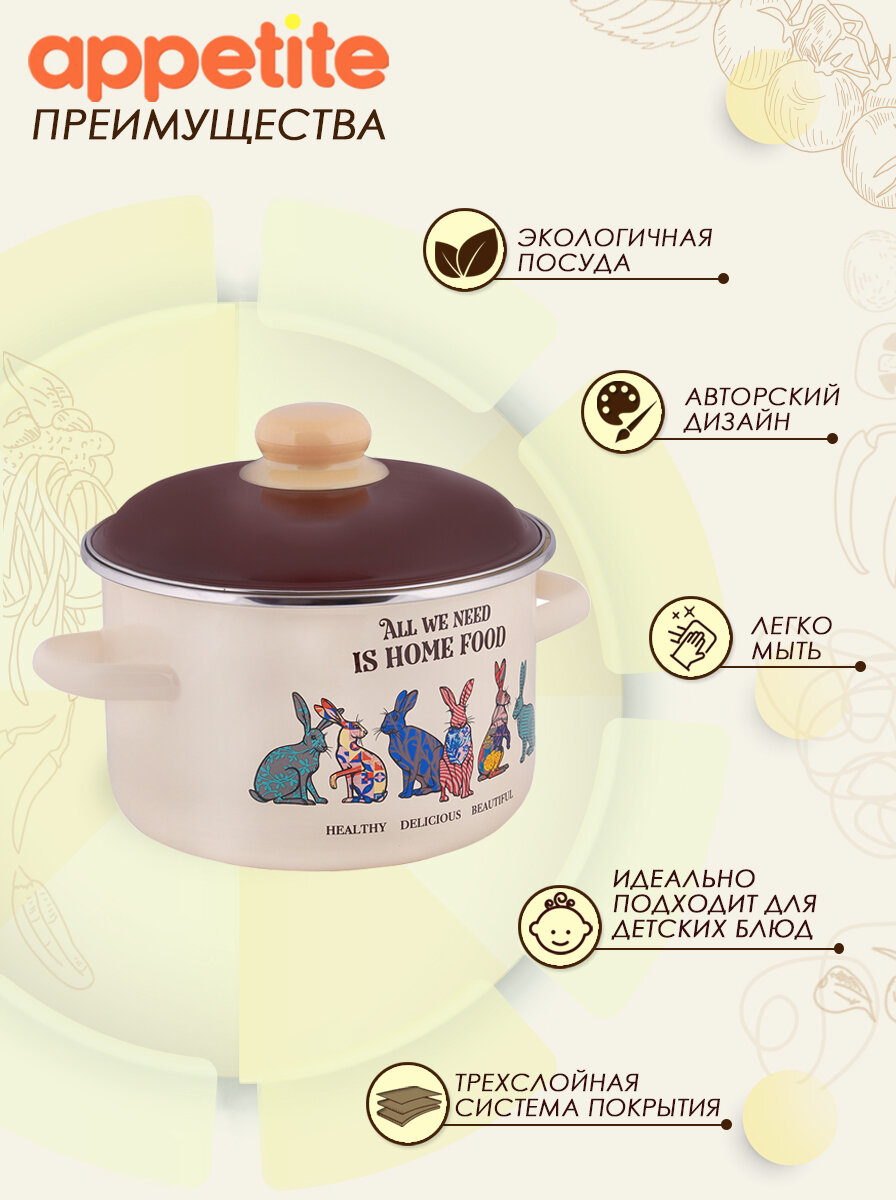 Кастрюля эмалированная Appetite Зайцы, с крышкой, 2 л