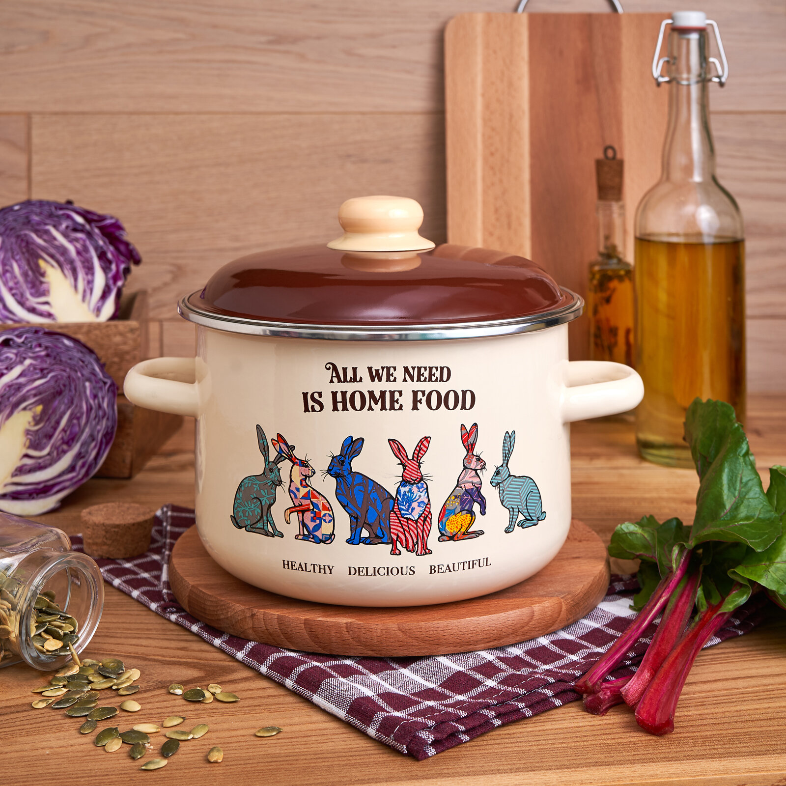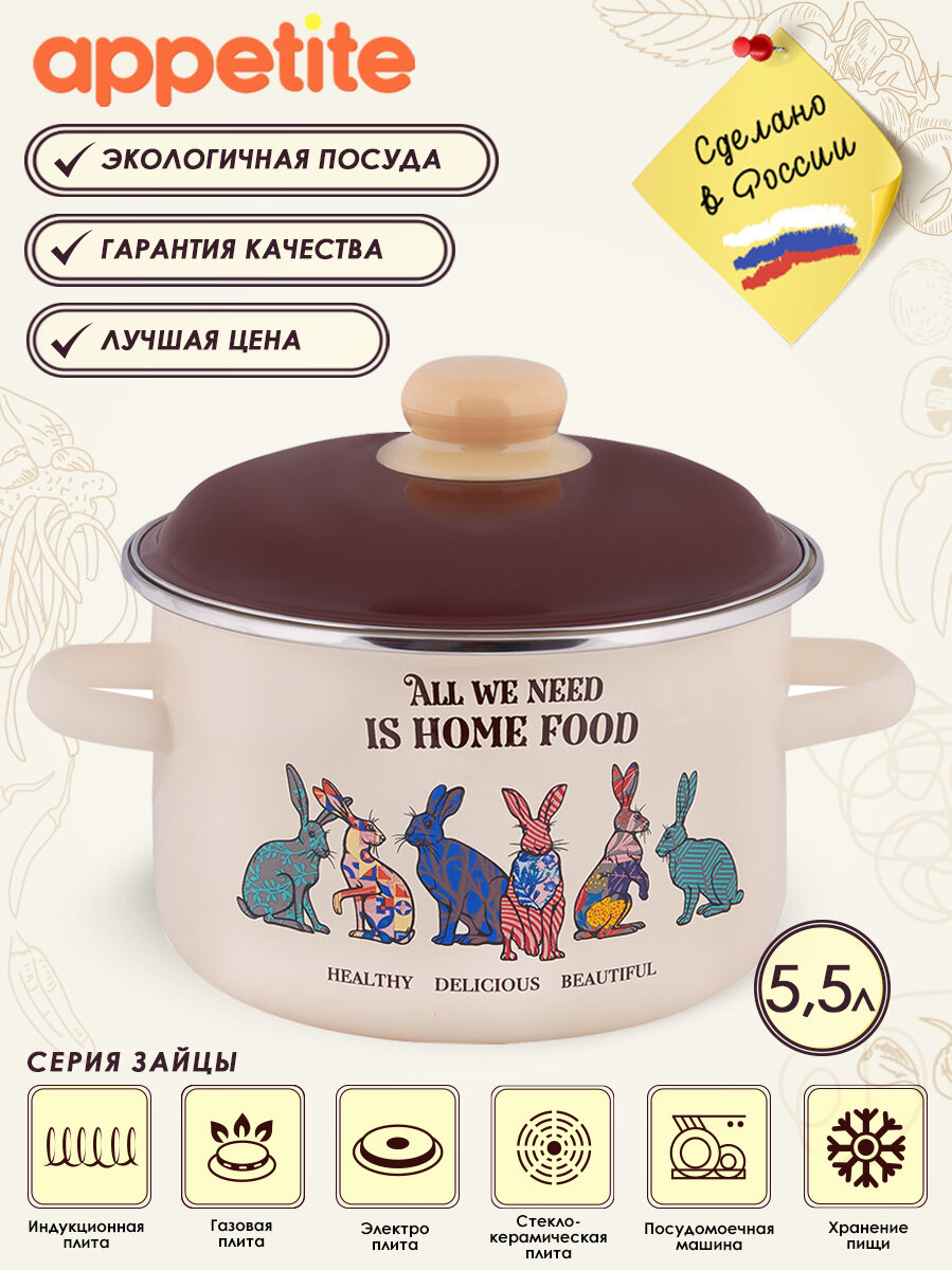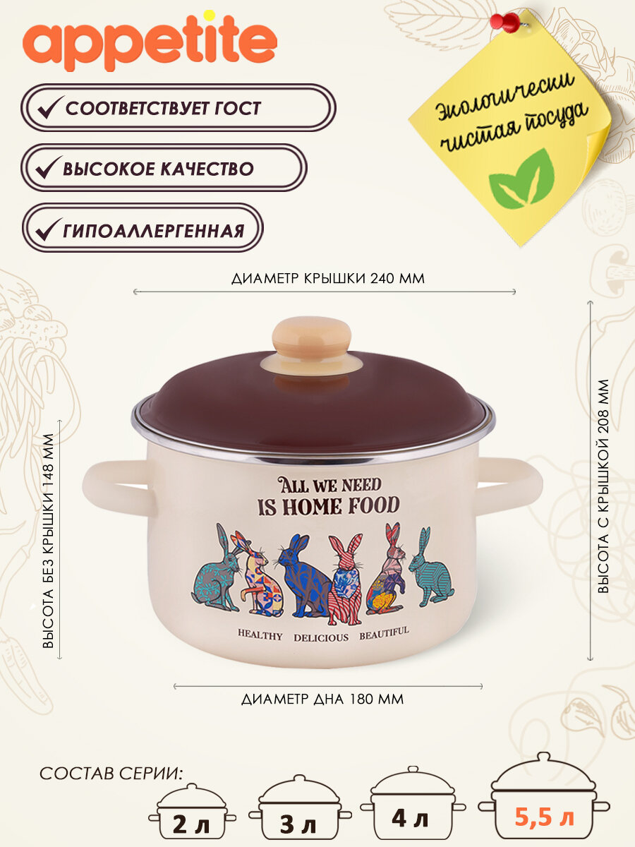 Купить Кастрюля эмалированная с крышкой Зайцы 5,5л ТМ Appetite
