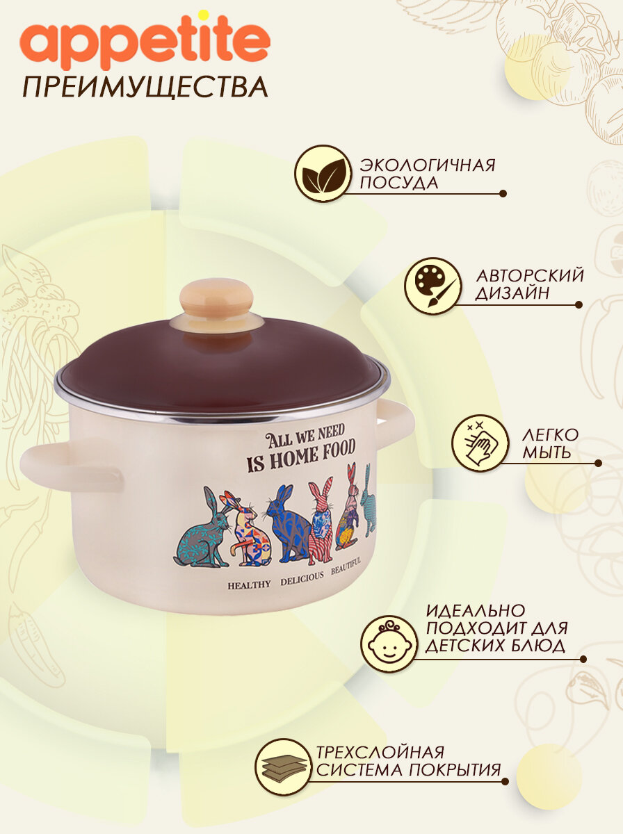 Кастрюля эмалированная Appetite Зайцы, с крышкой, 2 л