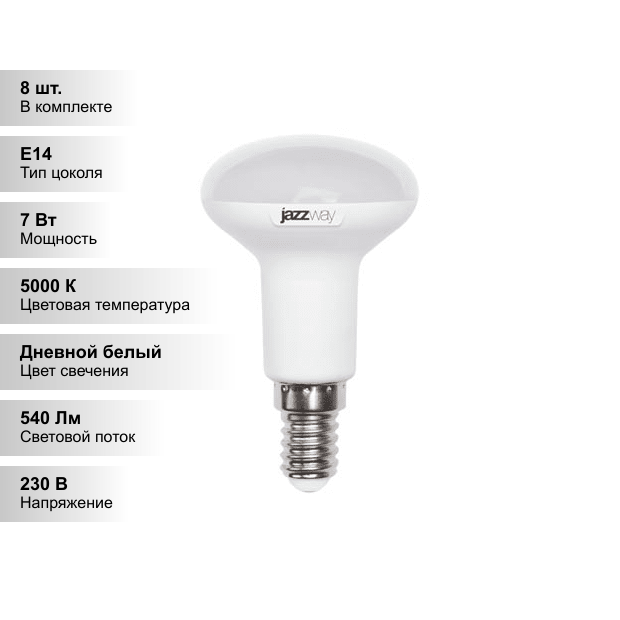 Купить (8 шт.) Светодиодная лампочка Jazzway R50 7Вт 230В 5000K E14