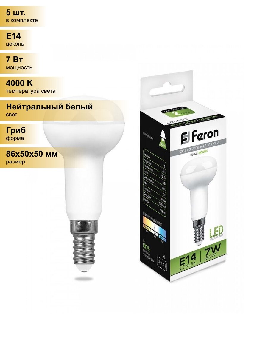 Купить (5 шт.) Светодиодная лампочка Feron R50 E14 7W(560lm) 4000K 4K прозрачная 86x50, LB-450 25514 Нейтральный белый. Цоколь E14