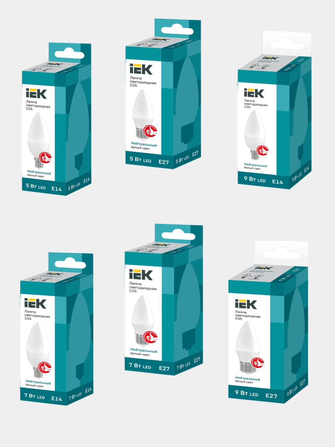 (6 шт.) Светодиодная лампочка IEK C35 9Вт 230В 3000К E14