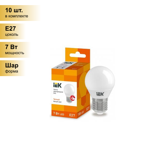 Светодиодная LED лампа IEK шар G45 E27 7W(630lm) 3000K 2K 78x45 матовая ECO LLE-G45-7-230-30-E27 (упаковка 10 штук)