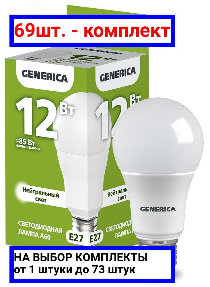 GENERICA Лампа светодиодная GENERICA A60, 12 Вт, груша, 4000 К, E27, 230 В, LL-A60-12-230-40-E27-G