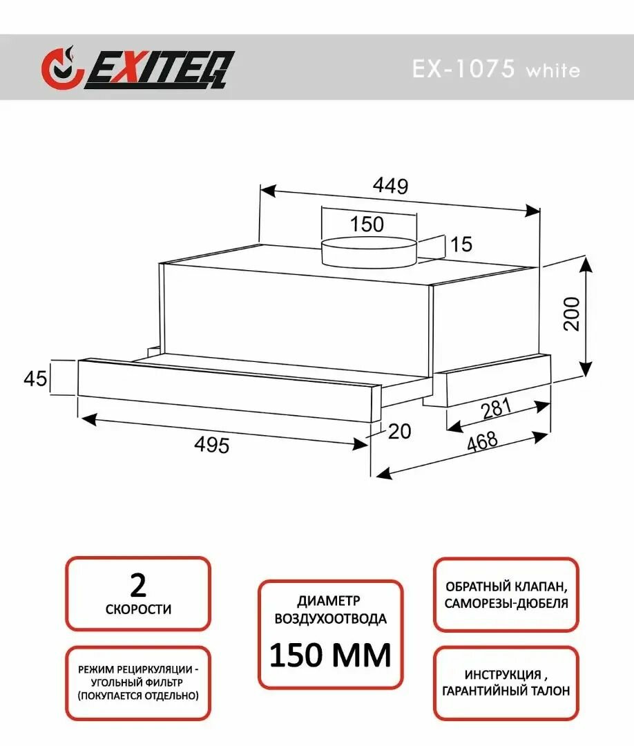 Вытяжка встраиваемая EXITEQ EX - 1075