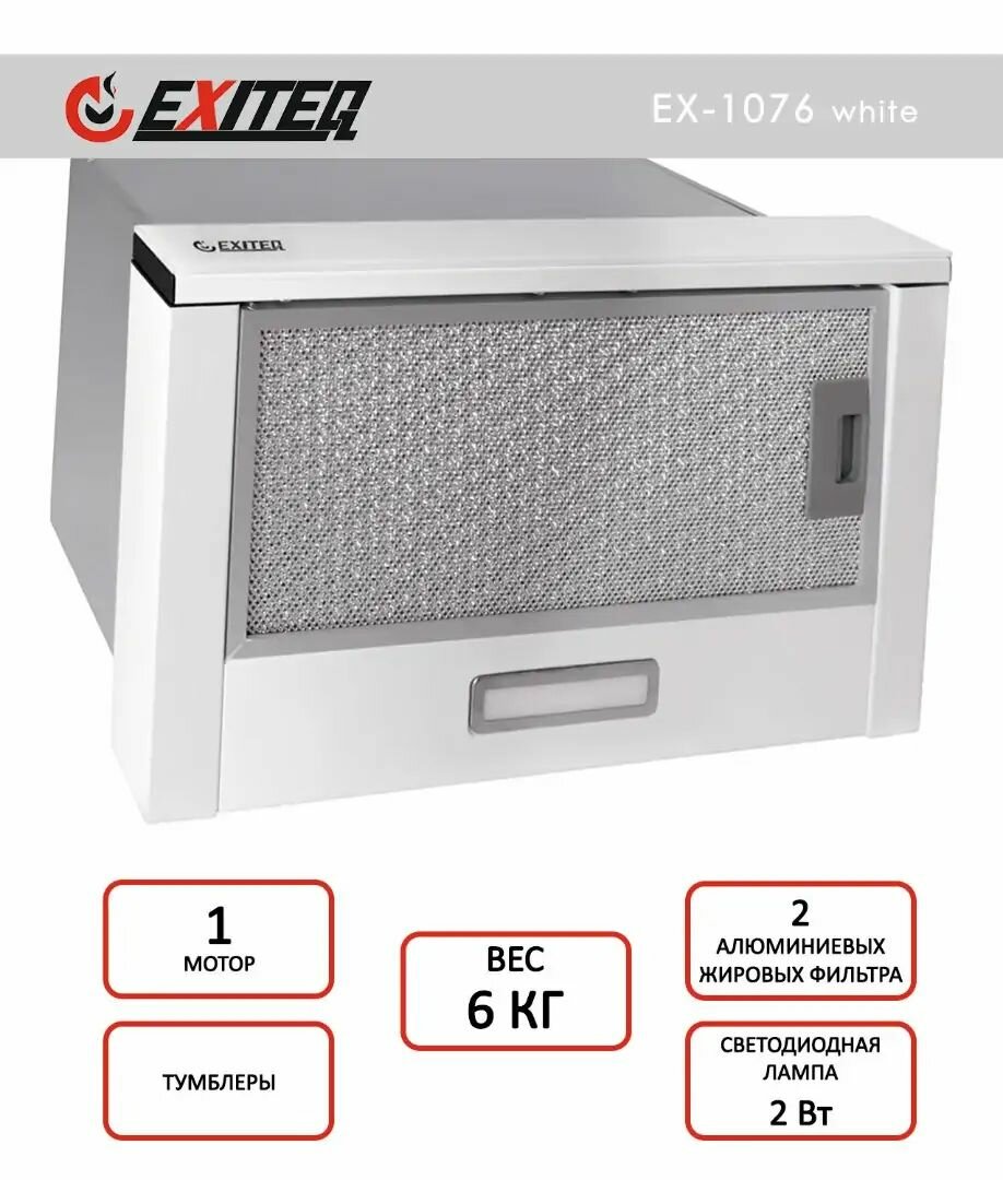 Встраиваемая вытяжка Exiteq EX-1076 white glass .