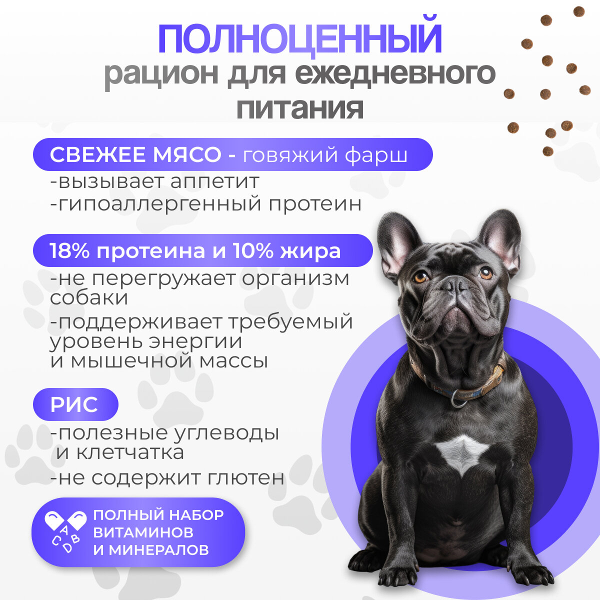 | Состав | говяжий фарш (рубец), мясная мука (не менее 27%), рис, жир говяжий (пищевой), кукуруза, семя льна, мякоть свеклы, минеральные добавки, сушеное яблоко, пробиотики, микроэлементы в органической форме (хелаты), витамины |