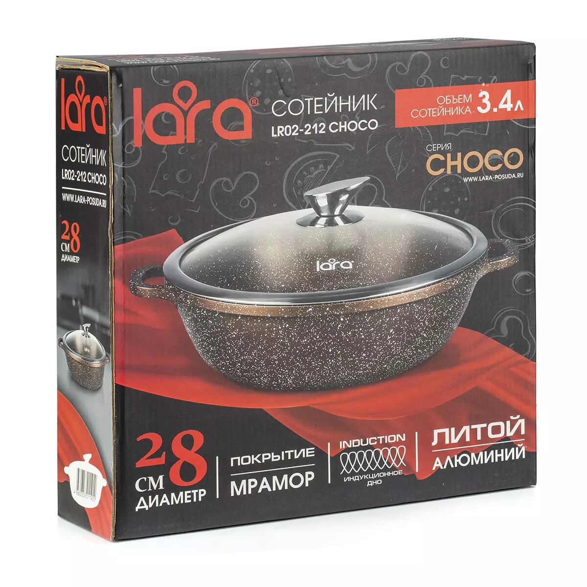 Сотейник LARA LR02-212 серия CHOCO 28х7см, 3.4л, мрамор, капсулированное индукц. дно, крышка