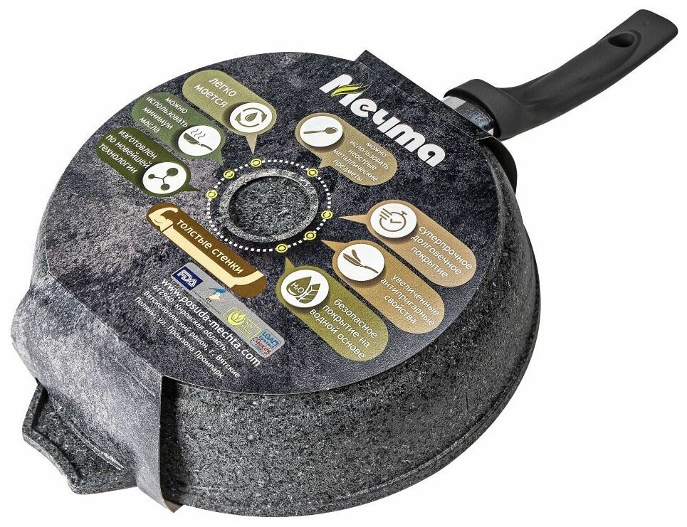 СохранитьСковорода Мечта 28 см Премиум с антипригарным покрытием со съемной ручкой, НЕ индукционная интересное: