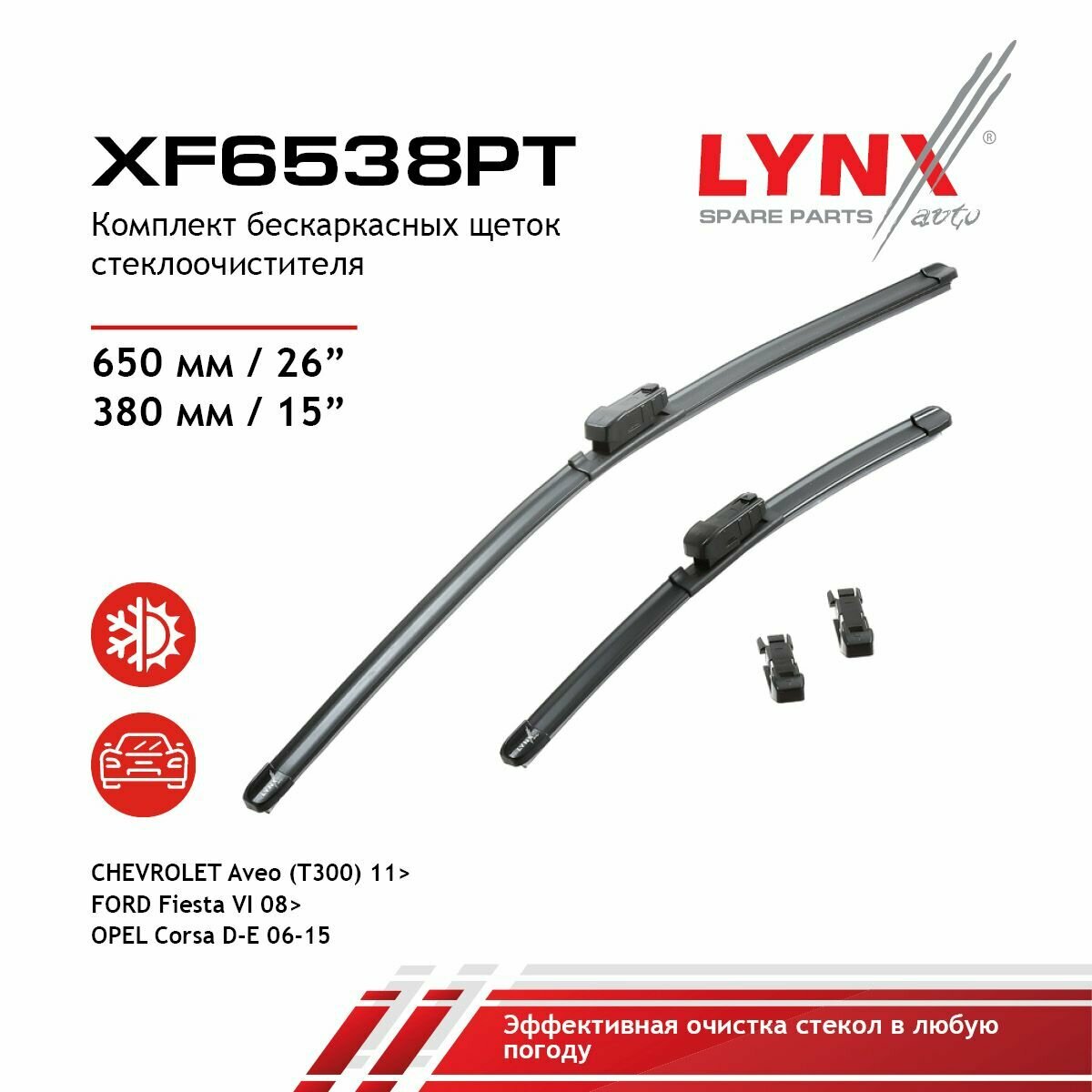 Комплект бескаркасных щеток стеклоочистителя 650 мм (26') / 380 мм (15') CHEVROLET, FORD, OPEL LYNXauto XF6538PT