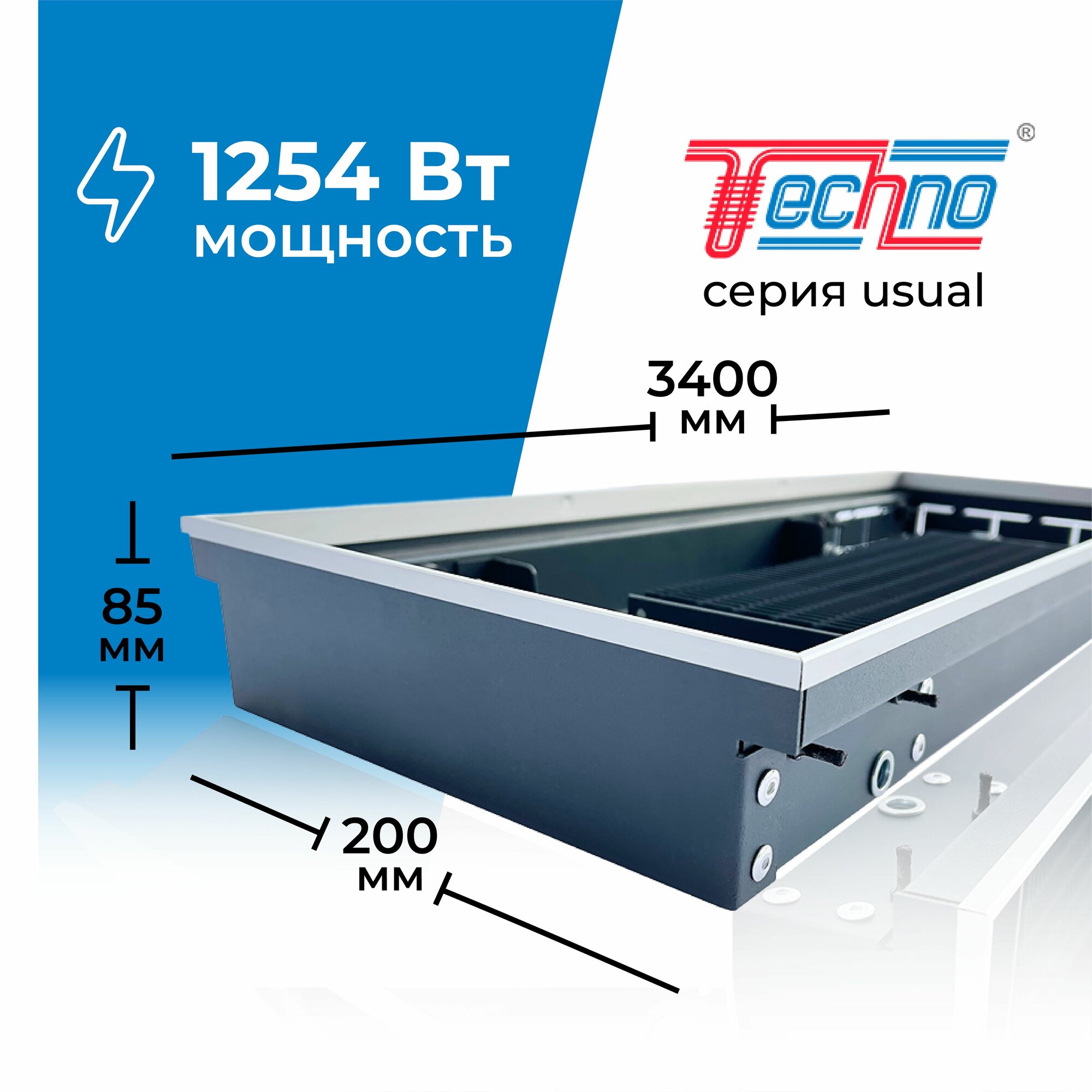 СохранитьВодяной конвектор с решеткой Techno Usual KVZ 200 - 85 - 3400 мм ( встраиваемый / внутрипольный ) с естесственной конвекцией интересное: