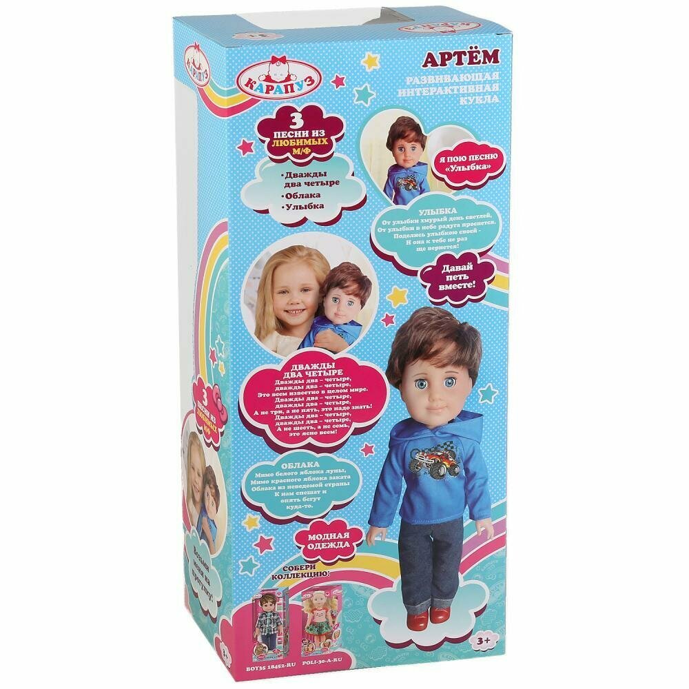 Кукла на бат озвучка 35 см, артем, 3 песни изь м/ф, в кор., ТМ "карапуз"