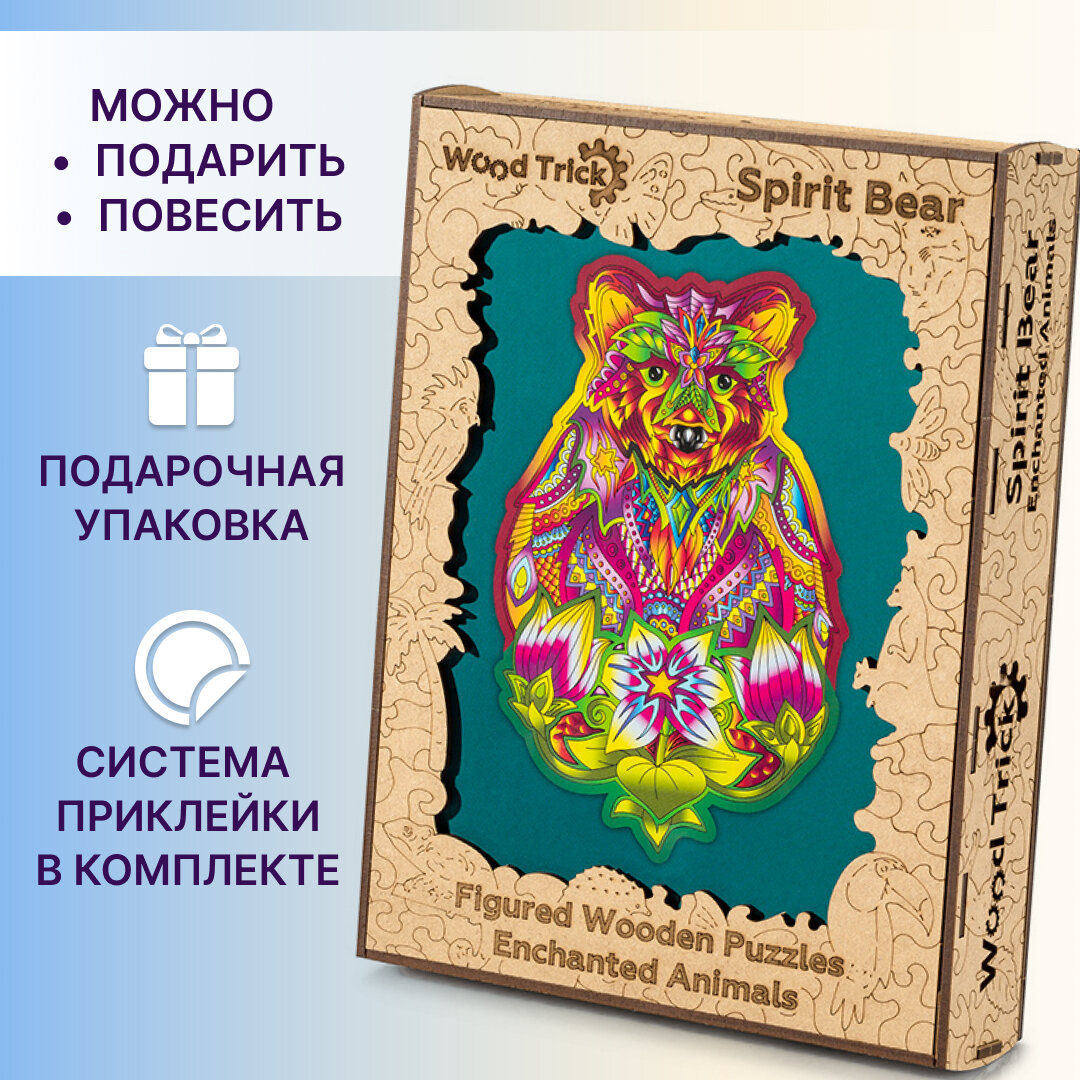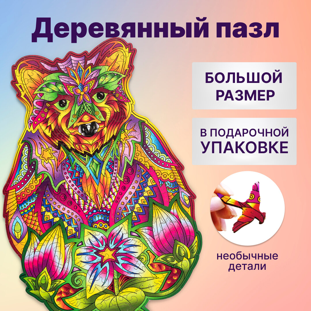 Купить Пазл деревянный Wood Trick Вдохновленный медведь 36x23см WT-00053