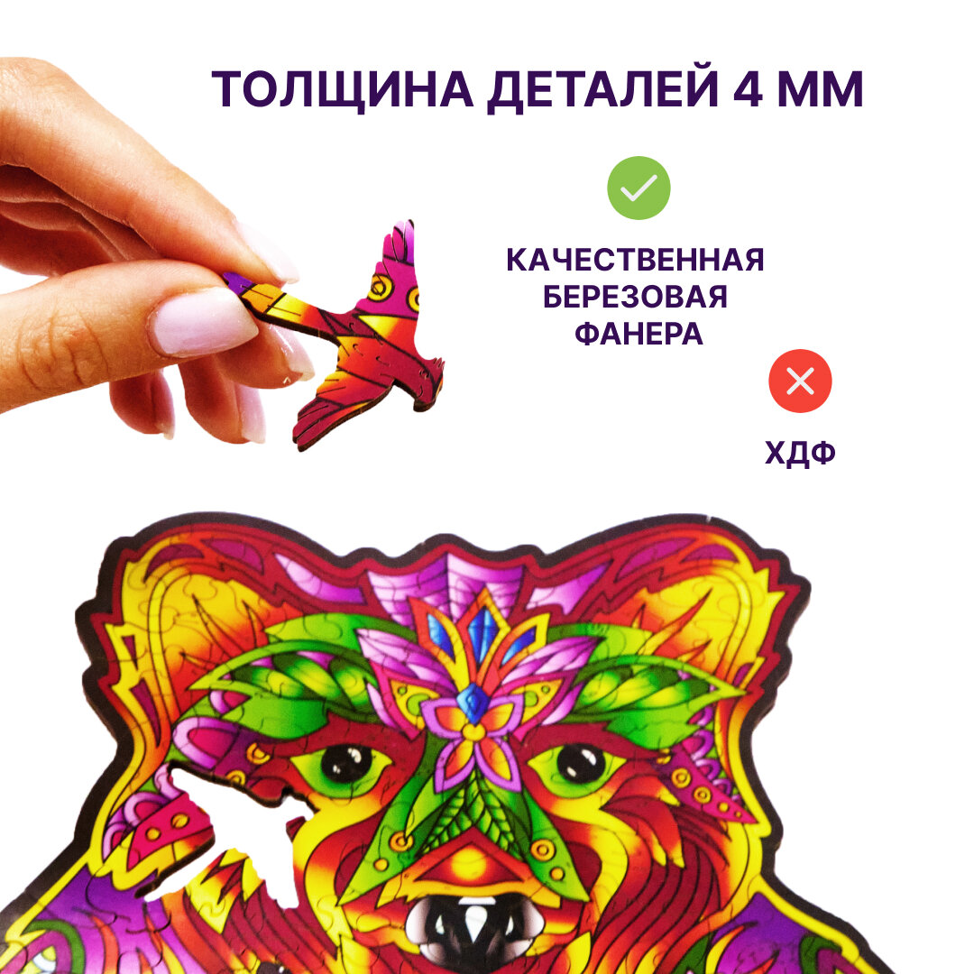 Пазл деревянный Wood Trick Вдохновленный медведь 36x23см WT-00053 интересное:
