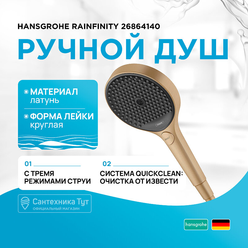 СохранитьРучной душ Hansgrohe Rainfinity 130 26864140 шлифованная бронза . интересное: