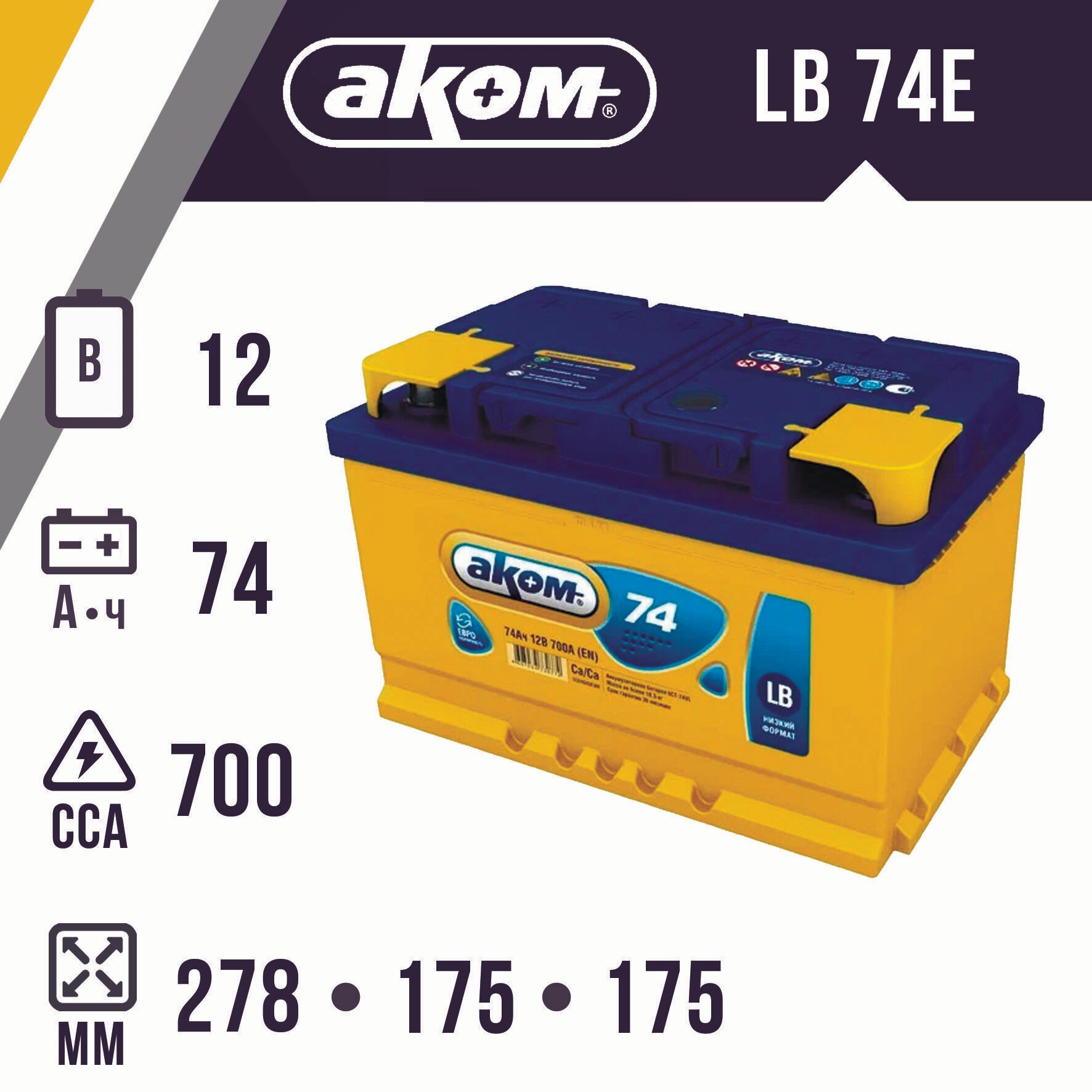 AKOM 6CT-74.0 LB Аккумулятор АКОМ LB 74 А/ч обратная R+ 278x175x175 EN700 А