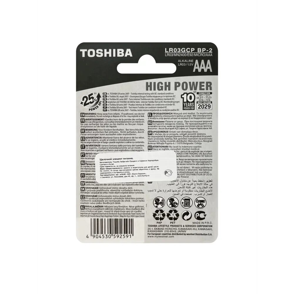 Батарейки Toshiba High Power Alkaline LR03GCP BP-2, блистер 2 шт.