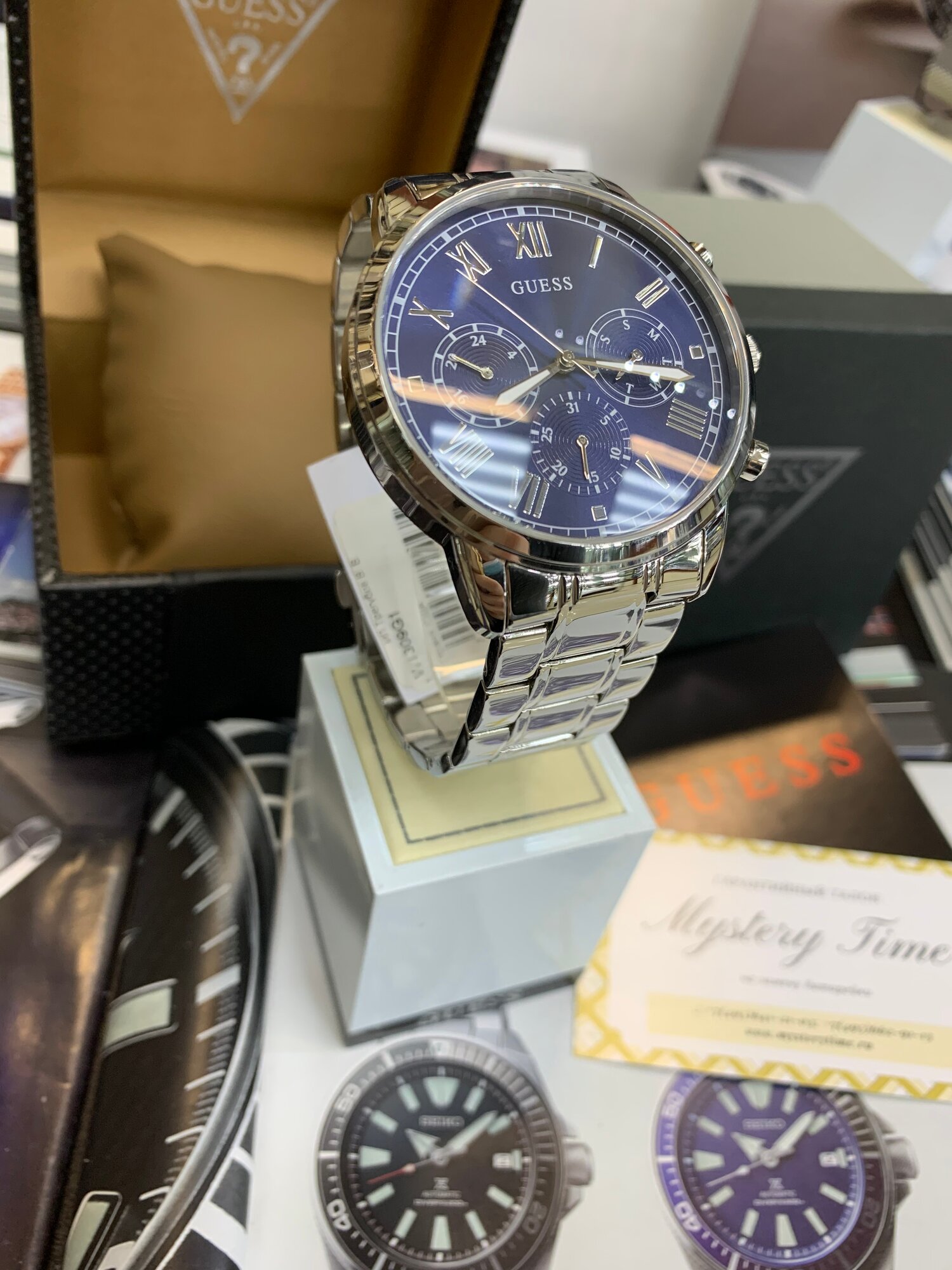 Часы американские наручные мужские кварцевые на браслете Guess W1309G1 интересное: