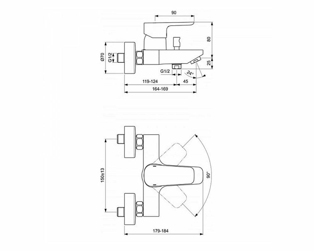 Ideal Standard CERAPLAN 3 Смеситель для ванны/душа B0718AA настенный, однозахватный, цвет: хром