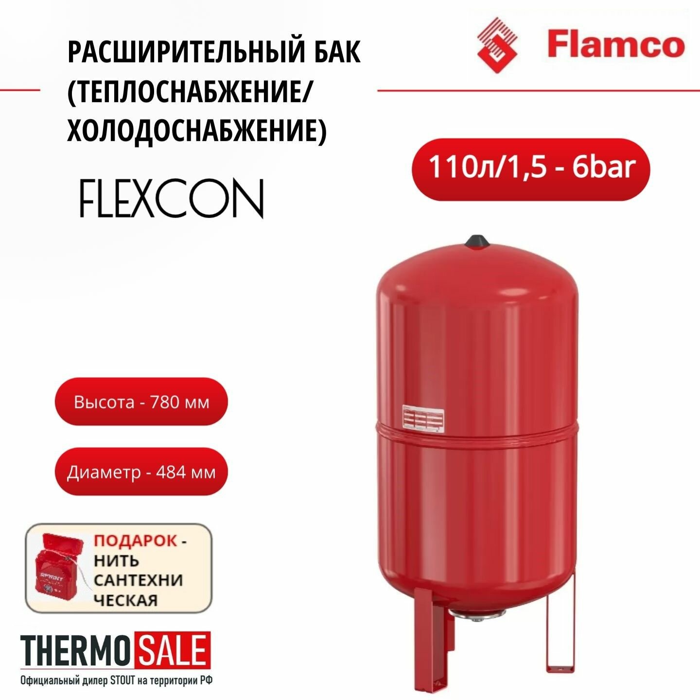 Купить Расширительный бак (теплоснабжение/холодоснабжение) Flexcon R 110л/1,5 - 6bar Flamco Нить сантехническая