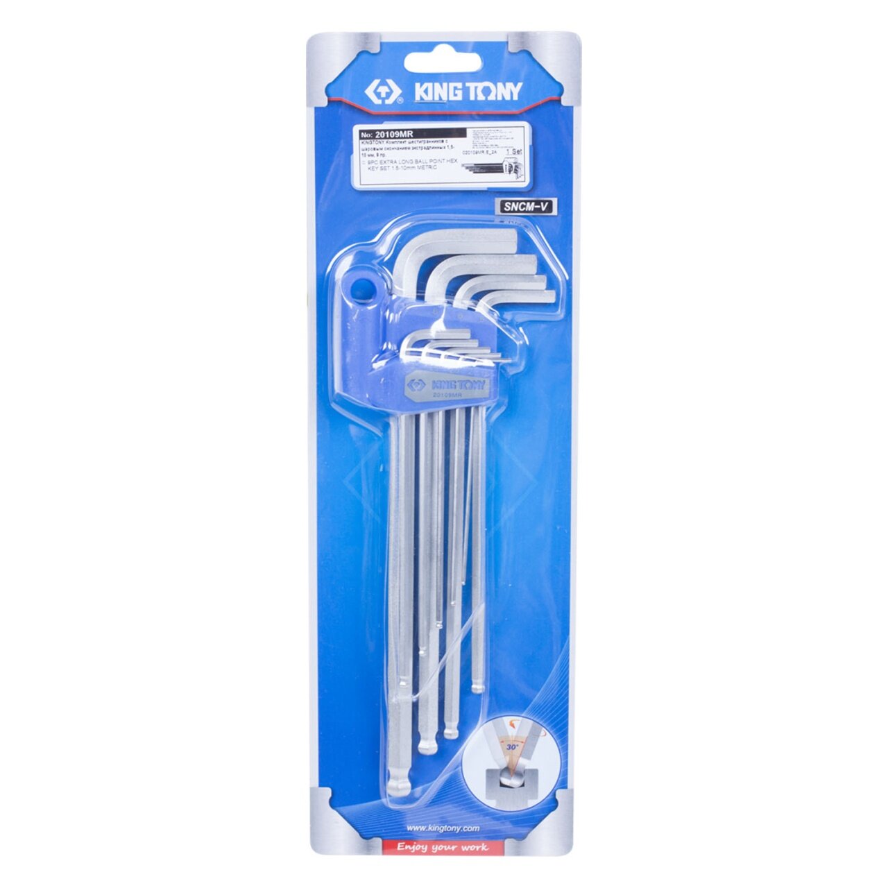 Набор Г-образных шестигранников 1,5-10 мм, длинные, с шаровым окончанием, 9 предметов KING TONY 20109MR