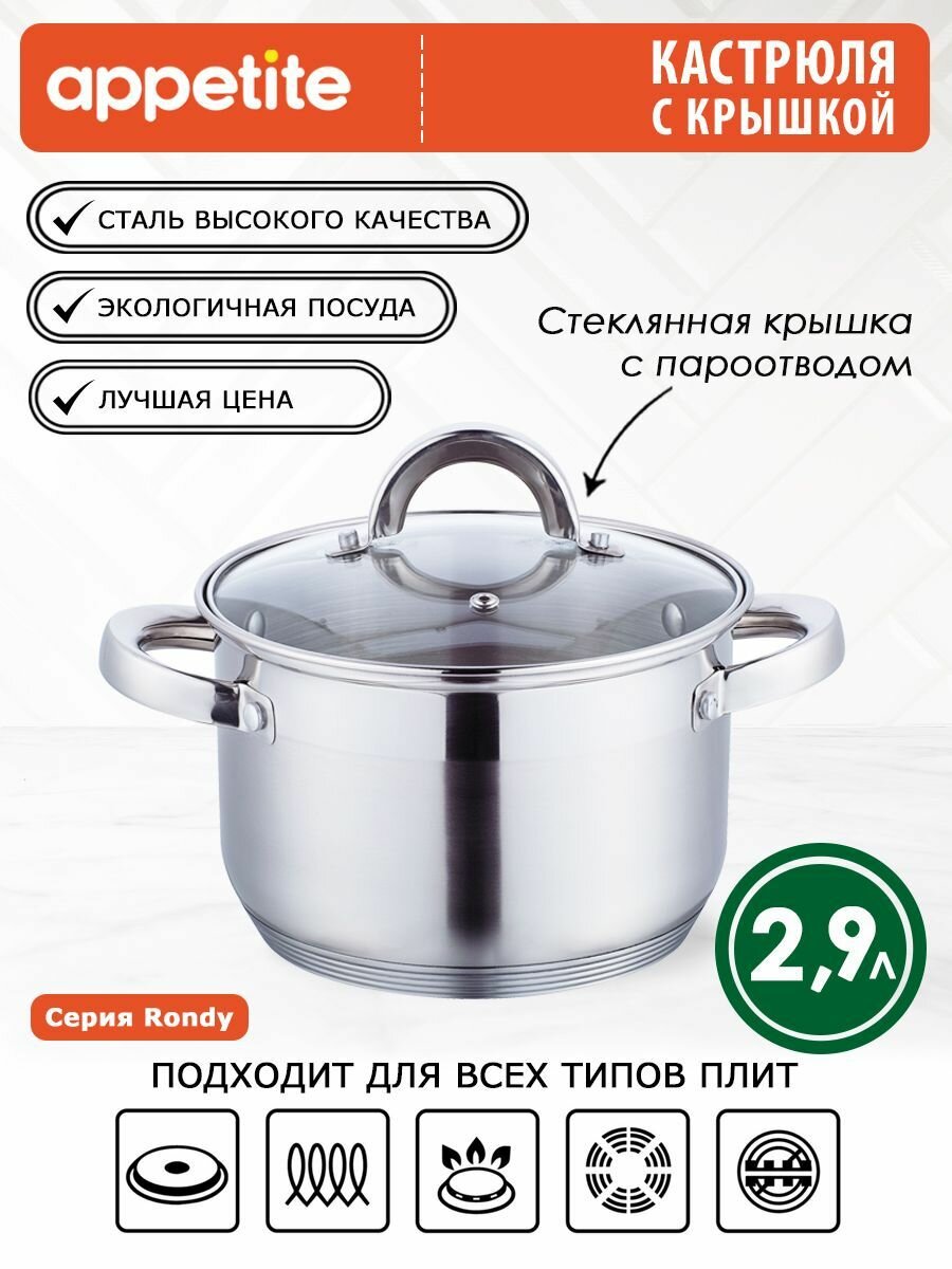 Кастрюля appetite Rondy нержавеющая сталь 2.9 л SH07293