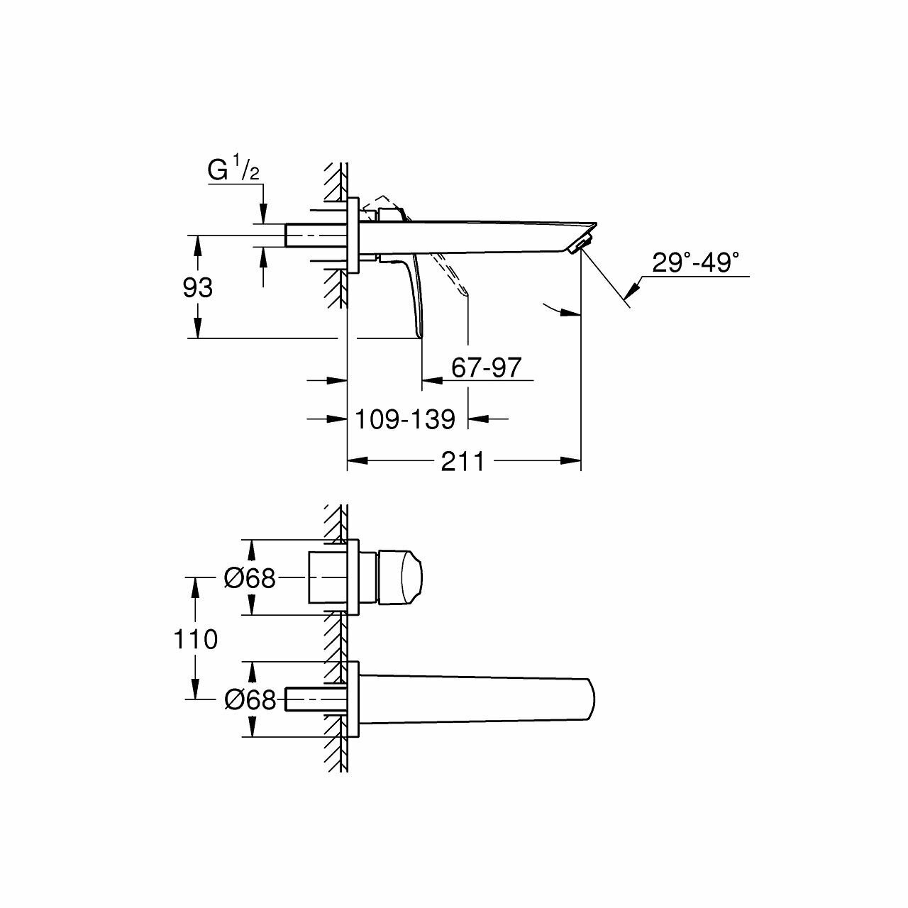 Смеситель для раковины Grohe Eurosmart M-Size настенный, встраиваемый, хром 29338003