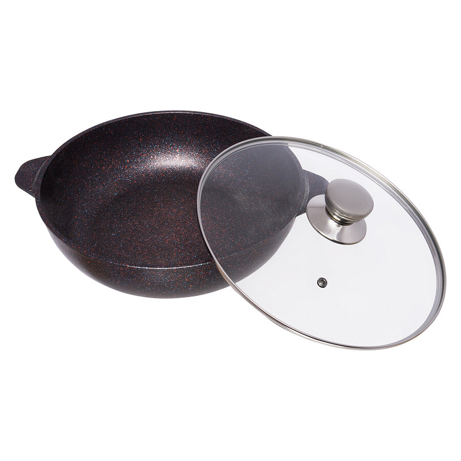Жаровня ТМ Традиция Сапфир литая 28см со стеклянной крышкой