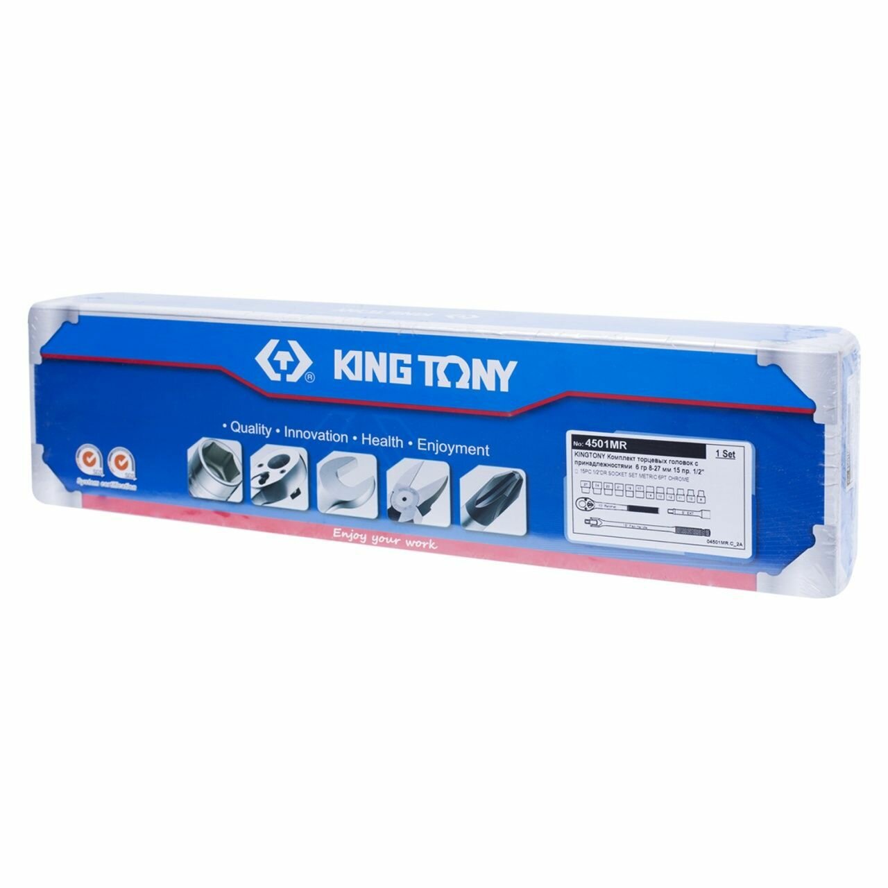Купить KING TONY Набор торцевых головок с принадлежностями 1/2", шестигранные, 8-27 мм, 15 предметов 4501MR